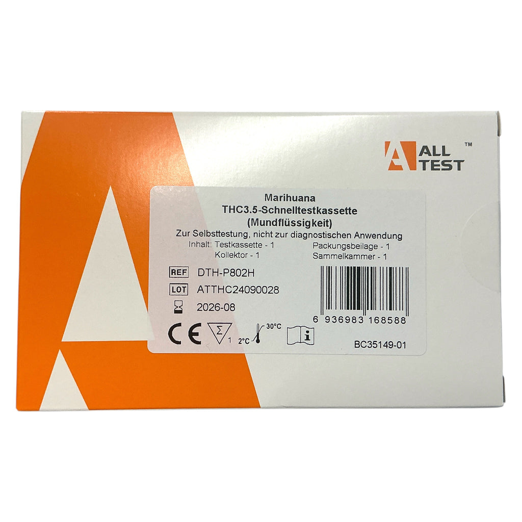 The AllTest THC 3.5 rapid test is your easy-to-use tool if you want to quickly find out about your fitness to drive after consuming cannabis. This test uses oral fluid or saliva and provides highly accurate results without the need to wait for a lab. Thanks to its sensitive detection limit of 3.5 ng/mL, this test reliably detects recent marijuana use, making it ideal for self-assessment before driving.