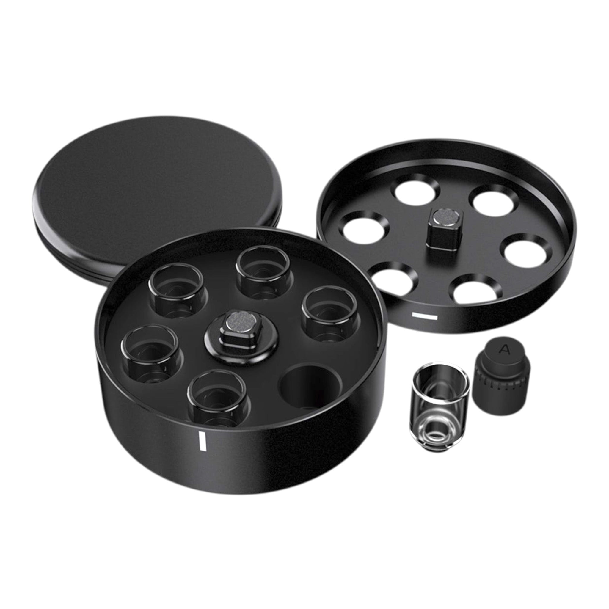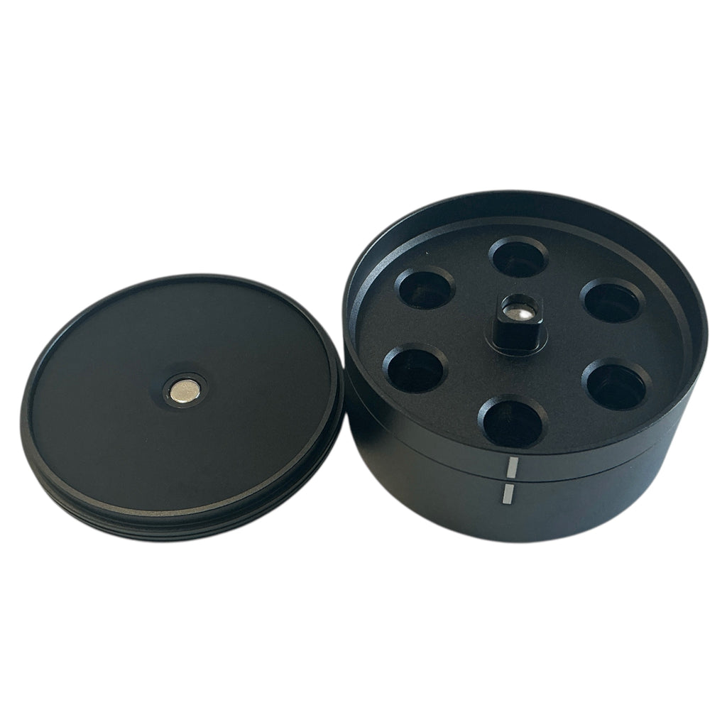 The magnetically held together Arizer Go Shell Case, in the black color typical for the manufacturer, was specially developed for the Go Shell herb capsules. A total of six glass capsules, which fit into the Arizer Go SRT vaporizer, can be clearly arranged in this black container.