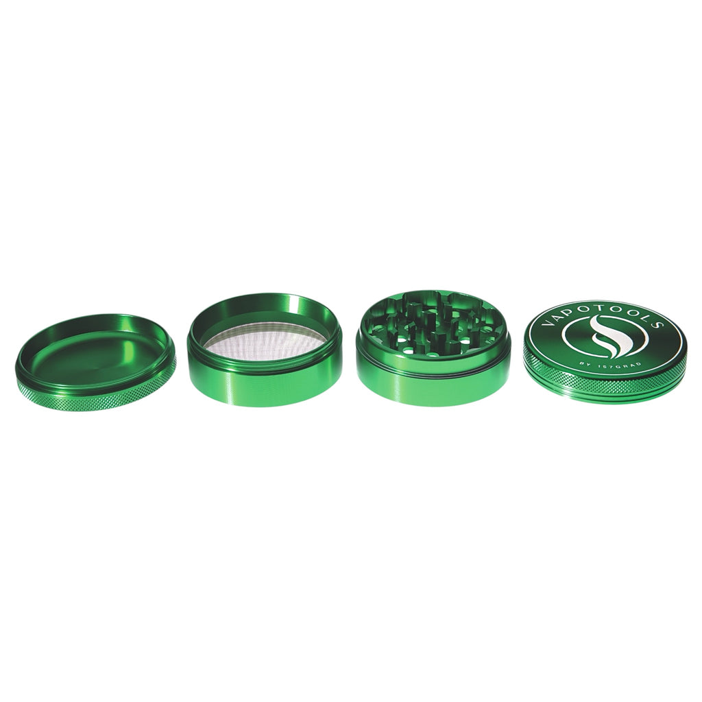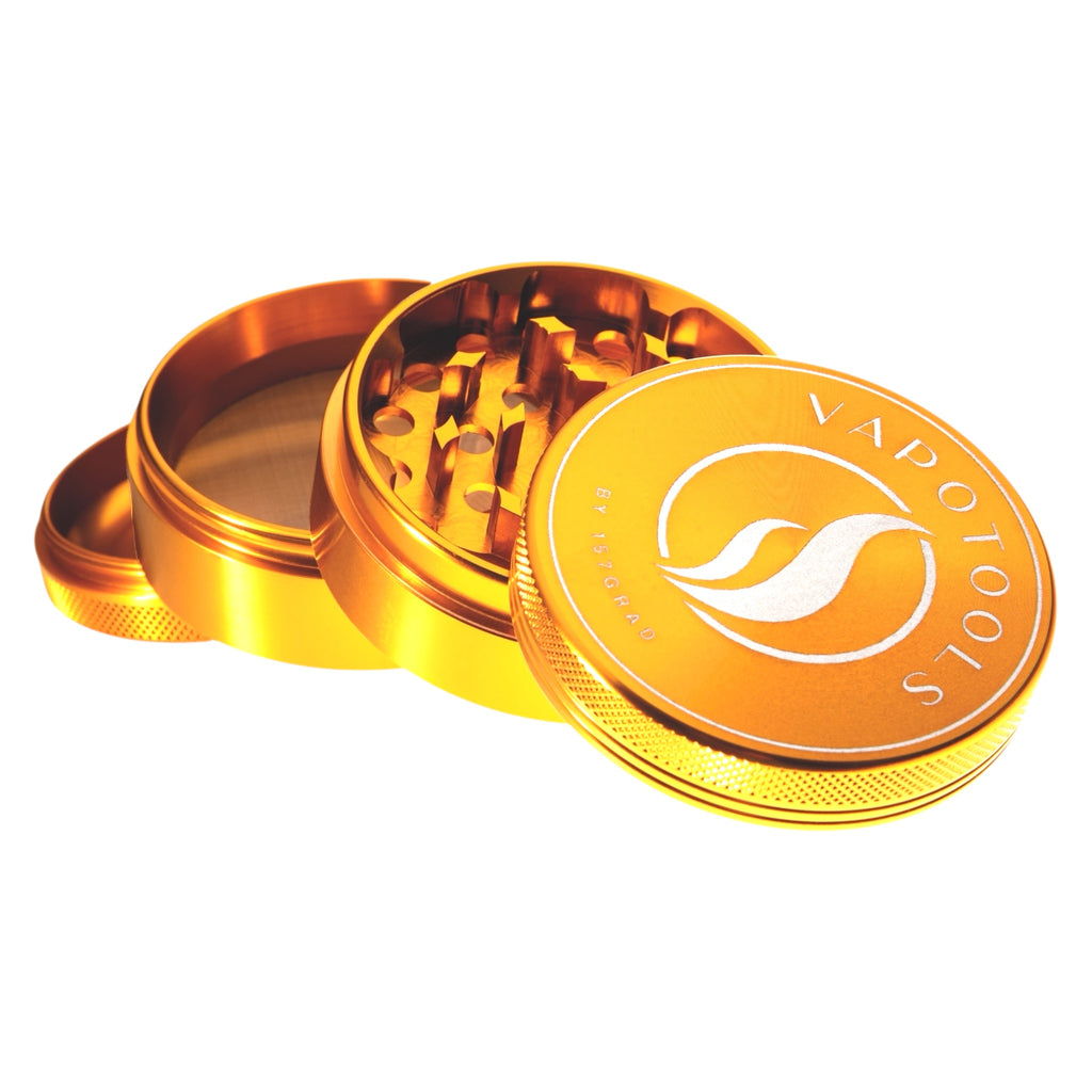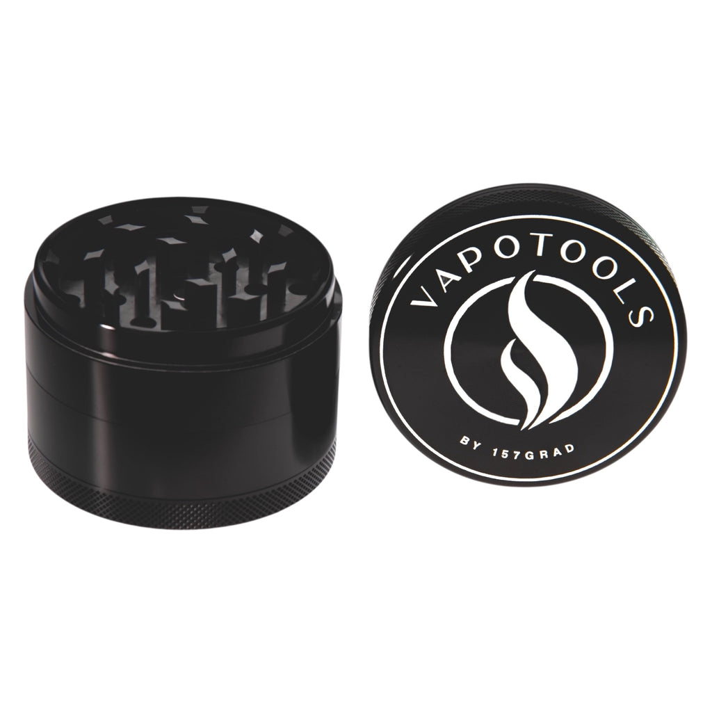 The Vapotools by 157Grad Aluminum Premium Grinder (4-piece set) is made of aircraft-grade aluminum and manufactured using state-of-the-art CNC technology. This ensures stable fits, clean edges, and reliable performance over many grinding sessions.
