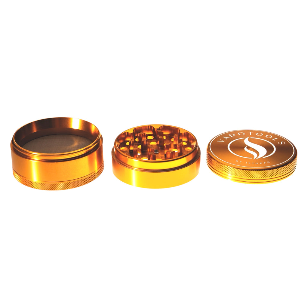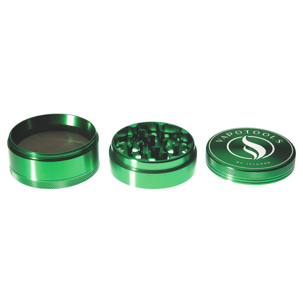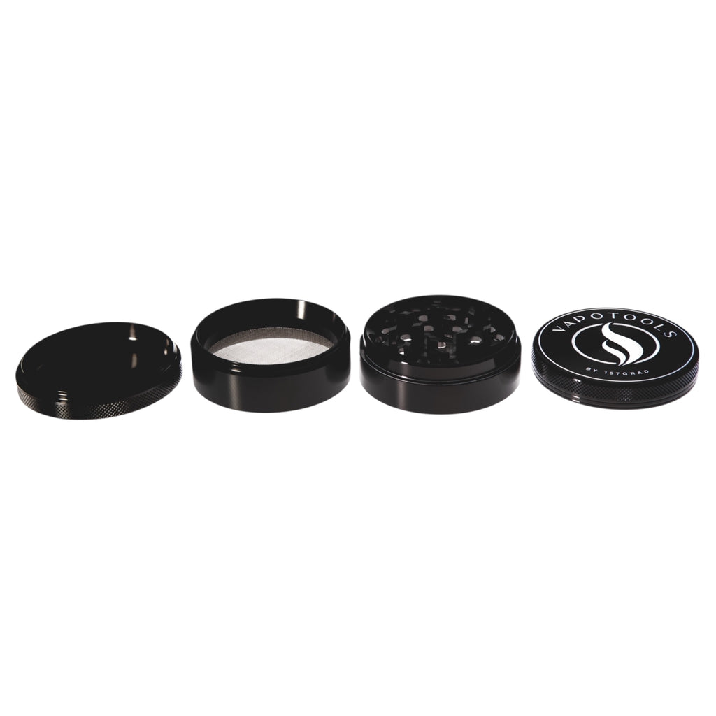 The Vapotools by 157Grad Aluminum Premium Grinder (4-piece set) is made of aircraft-grade aluminum and manufactured using state-of-the-art CNC technology. This ensures stable fits, clean edges, and reliable performance over many grinding sessions.