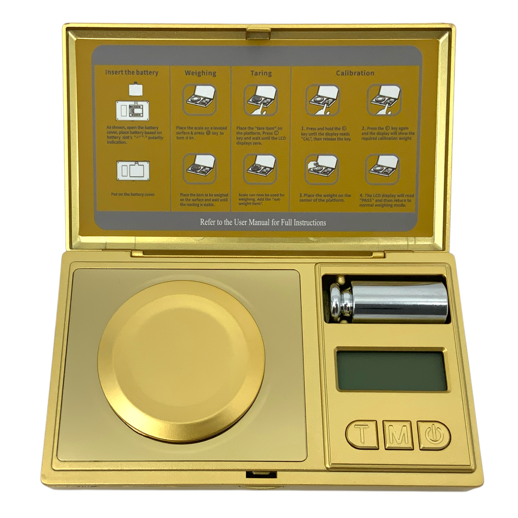 The VapourOn CS-E digital scale in gold, thanks to its design, looks almost like a small piece of jewelry and at the same time convinces with its precise technology. It reliably measures up to 50 grams with an accuracy of 0.001 g. This makes it perfect for all applications where precise weighing is crucial.