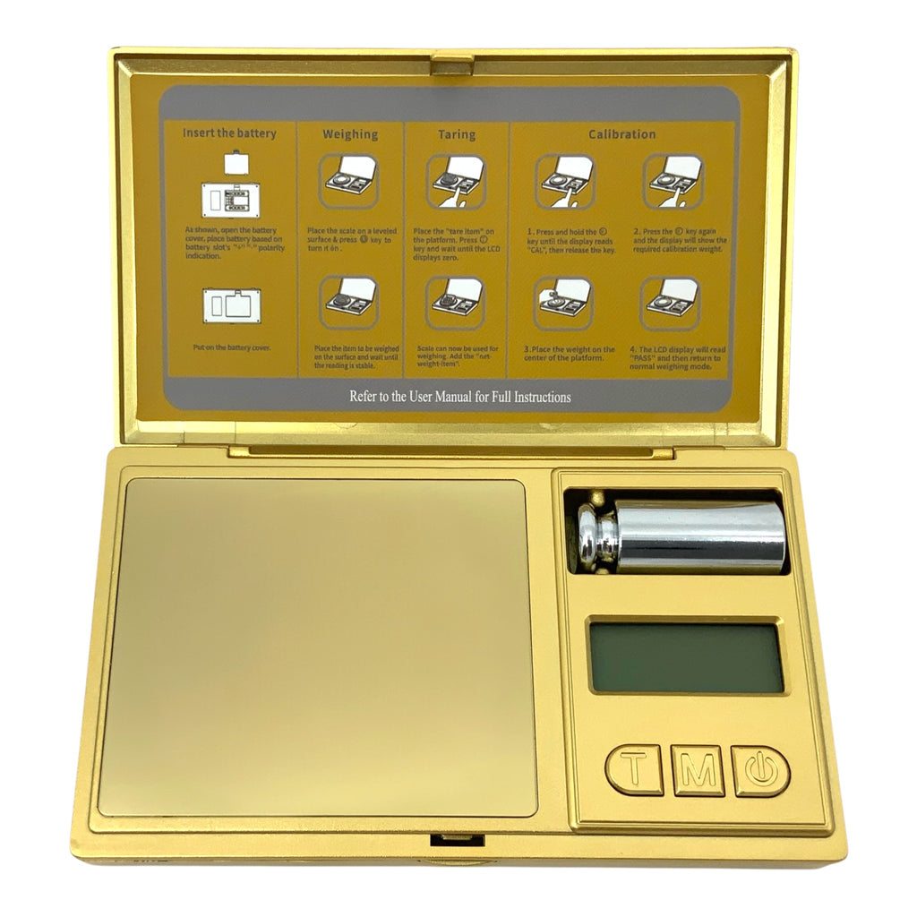 Die VapourOn CS-E Digitalwaage in Gold wirkt dank ihres Designs fast wie ein kleines Schmuckstück und überzeugt gleichzeitig durch präzise Technik. Sie misst zuverlässig bis zu 50 Gramm und das mit einer Genauigkeit von 0,001 g. Damit eignet sie sich perfekt für alle Anwendungen, bei denen exaktes Wiegen entscheidend ist.
